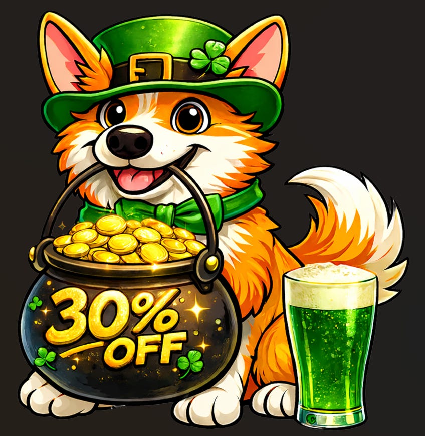 Mooch wants to offer you the luck of the Irish with a 30% off paid subscriber rate for St. Patrick’s Day! If you’ve been considering becoming a paid subscriber to support my independent journalism, now is the time.